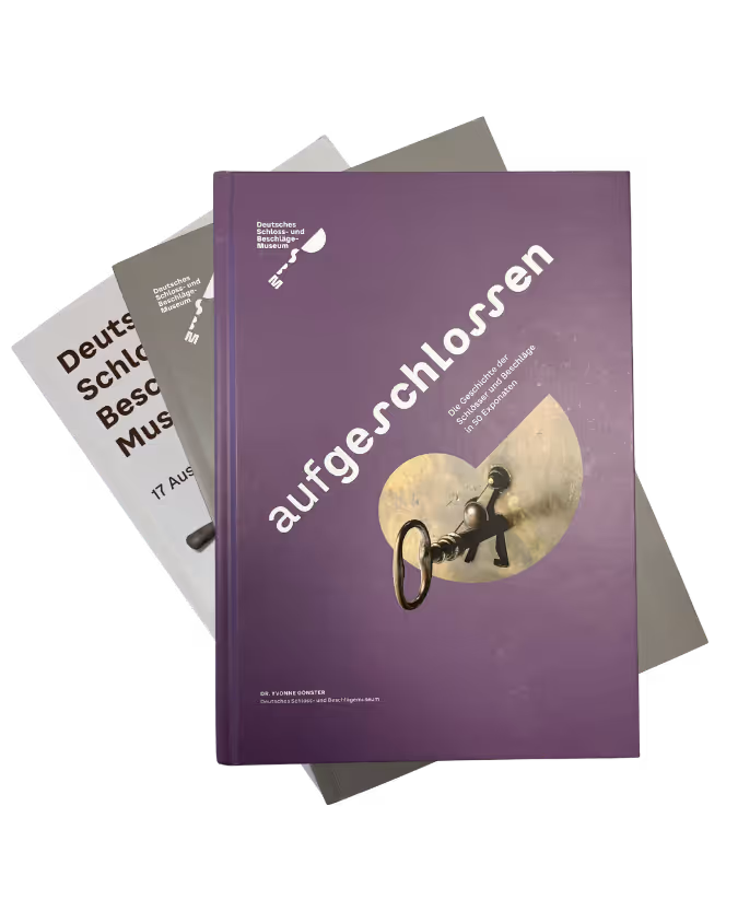 In unserem Shop können Sie außerdem die drei Kataloge zu unserer Dauerausstellung erwerben. Das Begleitbuch (9,90 €), das kürzere Begleitheft (3,90 €) und die Broschüre in Leichter Sprache (3,90 €) stellen reich bebildert die Highlights der Sammlung vor und erzählen vom spannenden Wettlauf um die beste Sicherheitstechnik.
